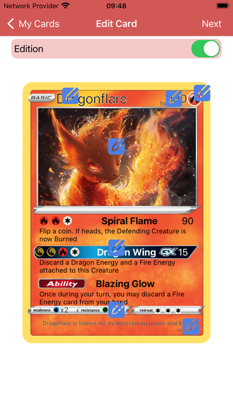 แอปนี้รองรับตัวเลือกการปรับแต่งที่หลากหลาย ช่วยให้ผู้ใช้สามารถสร้างการ์ดสำหรับประเภทสัตว์ประหลาดที่แตกต่างกัน เช่น ไฟ การต่อสู้ น้ำ และไฟฟ้า ผู้ใช้สามารถอัปโหลดภาพของตนเองหรือถ่ายภาพใหม่เพื่อปรับแต่งการ์ดของตน ฟีเจอร์ Creations Gallery ช่วยให้สามารถจัดระเบียบและแก้ไขการ์ดได้อย่างง่ายดาย ในขณะที่ฟังก์ชันการแสดงตัวอย่างช่วยให้ผู้ใช้สามารถดูว่าผลงานของตนจะปรากฏอย่างไร ก่อนที่จะทำการสรุป นอกจากนี้ ผู้ใช้ยังสามารถแชร์การ์ดที่กำหนดเองกับเพื่อนและชุมชนเกม เพื่อเพิ่มประสบการณ์การมีส่วนร่วมโดยรวม